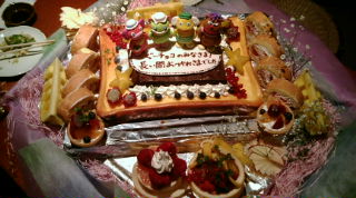 夜の打ち上げで素敵なケーキを頂きました。