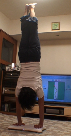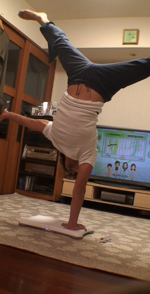 片足立ちっていうバランステストを片手でやったら、速攻で崩れてバランス年齢64歳って言われてしまったよ。