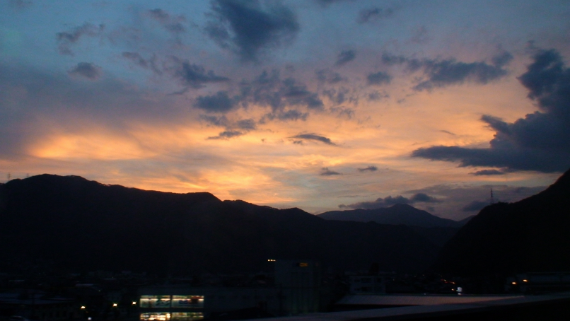 普段は海の夕焼けばかりだけど、山の夕焼けもまたオツだね。