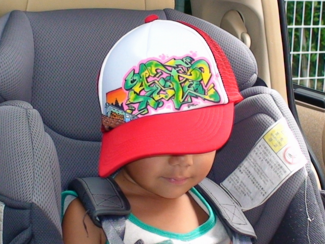 以前、何度かお仕事でご一緒させて頂いたASKA君というcoolなダンサーさんに作って頂いたcapです。
