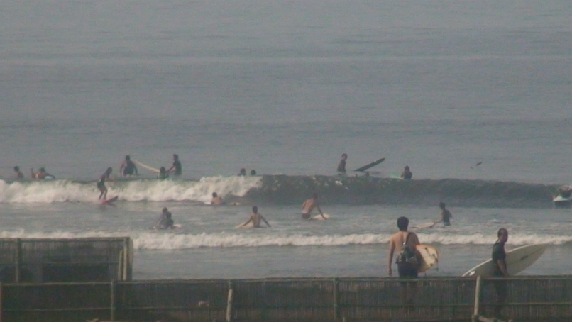 台風5号の影響ですごいオンショアで海岸にいると砂がバチバチと飛んできて、まともに目を開けられる状況ではないのに、それでもビーチバレーや日光浴などで盛り上がってる。