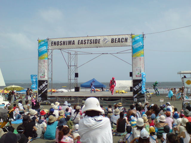 で、片瀬東海岸ではゲキレンジャーショーという、昔からある戦隊物のショーをやってました。